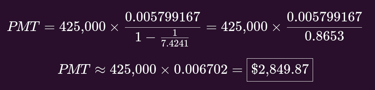 As you can see the monthly payment for this mortgage loan is exactly $2,849.87